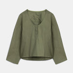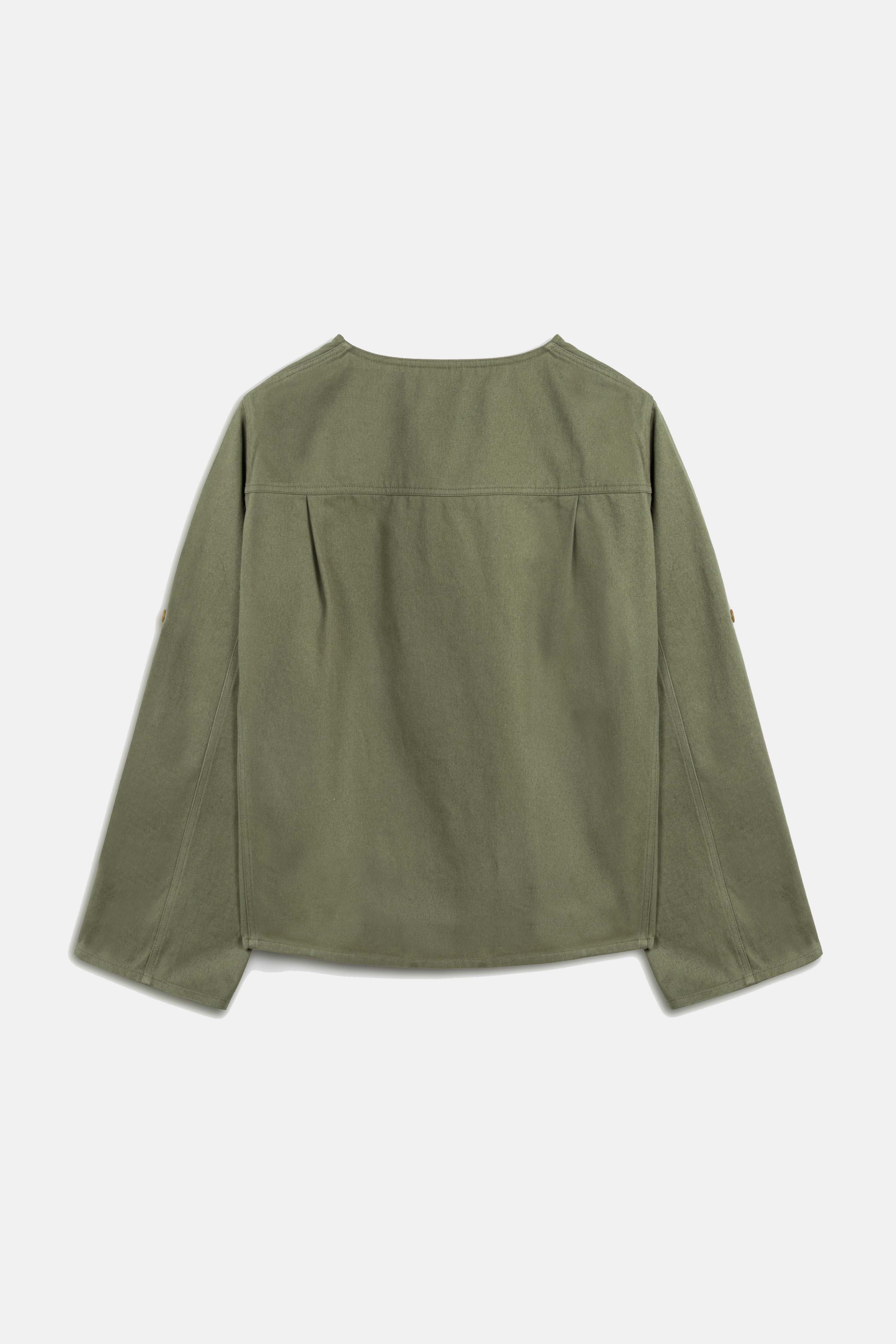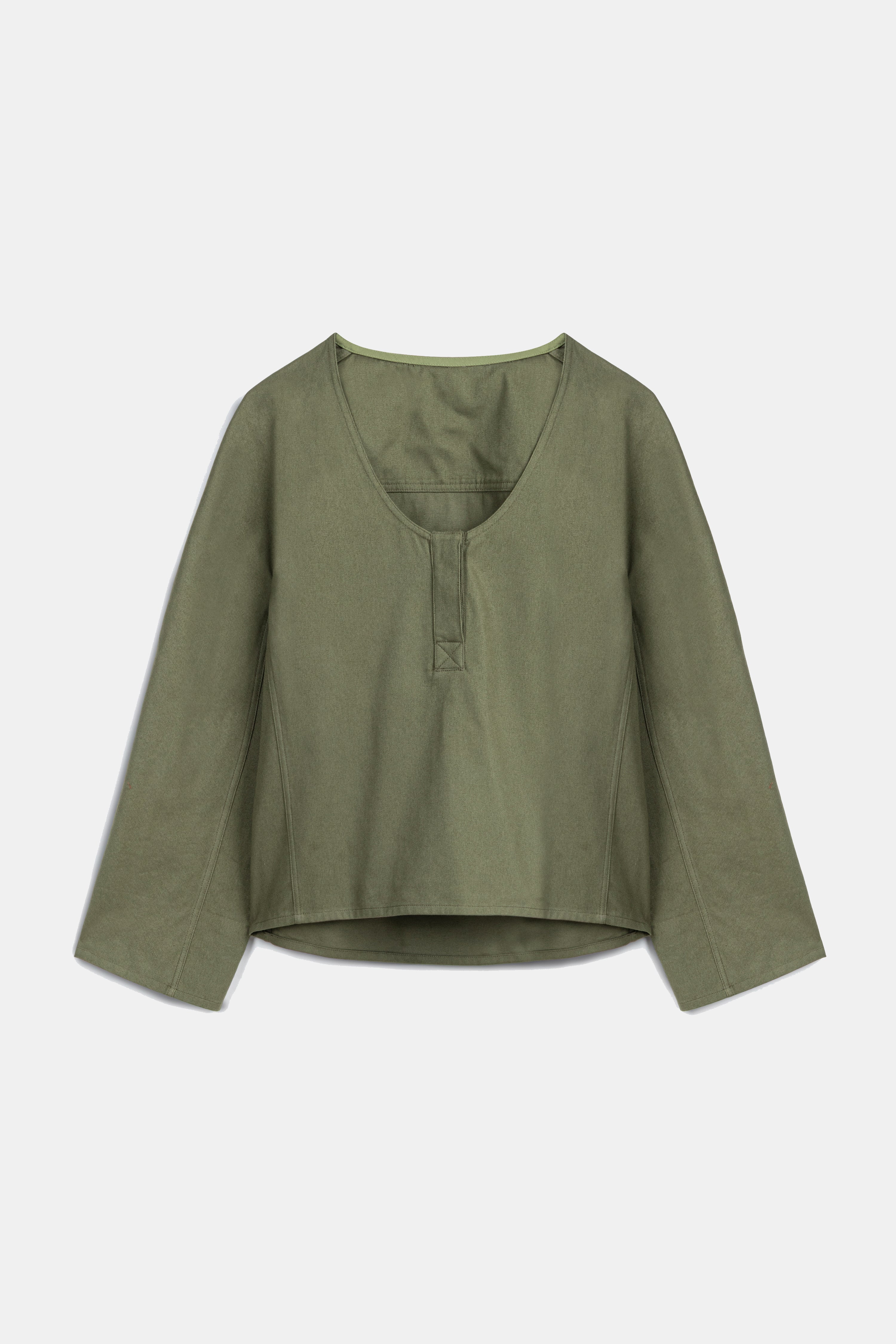 Relaxed-fit cotton shirt with wide neckline and stitched panel details.