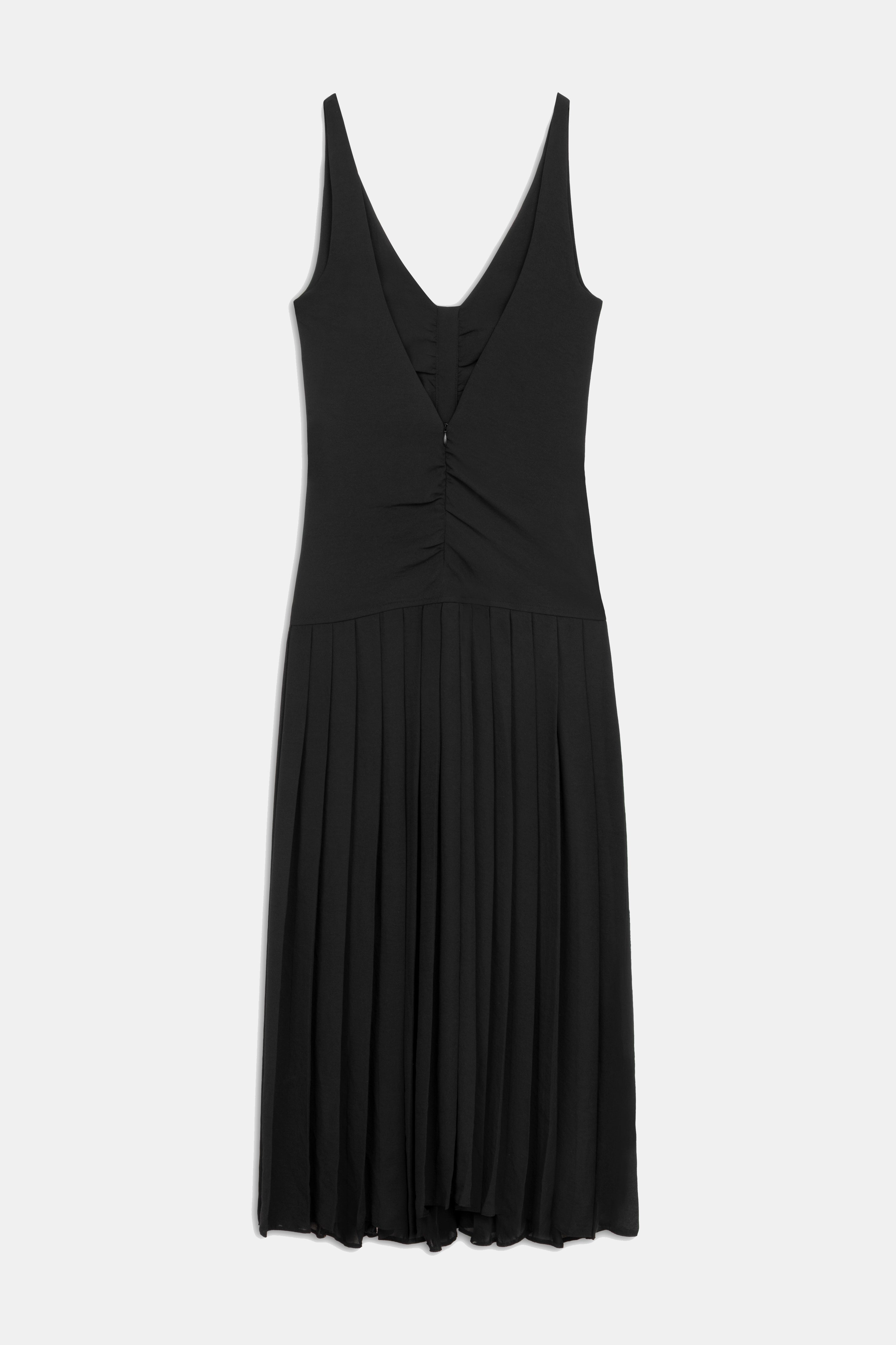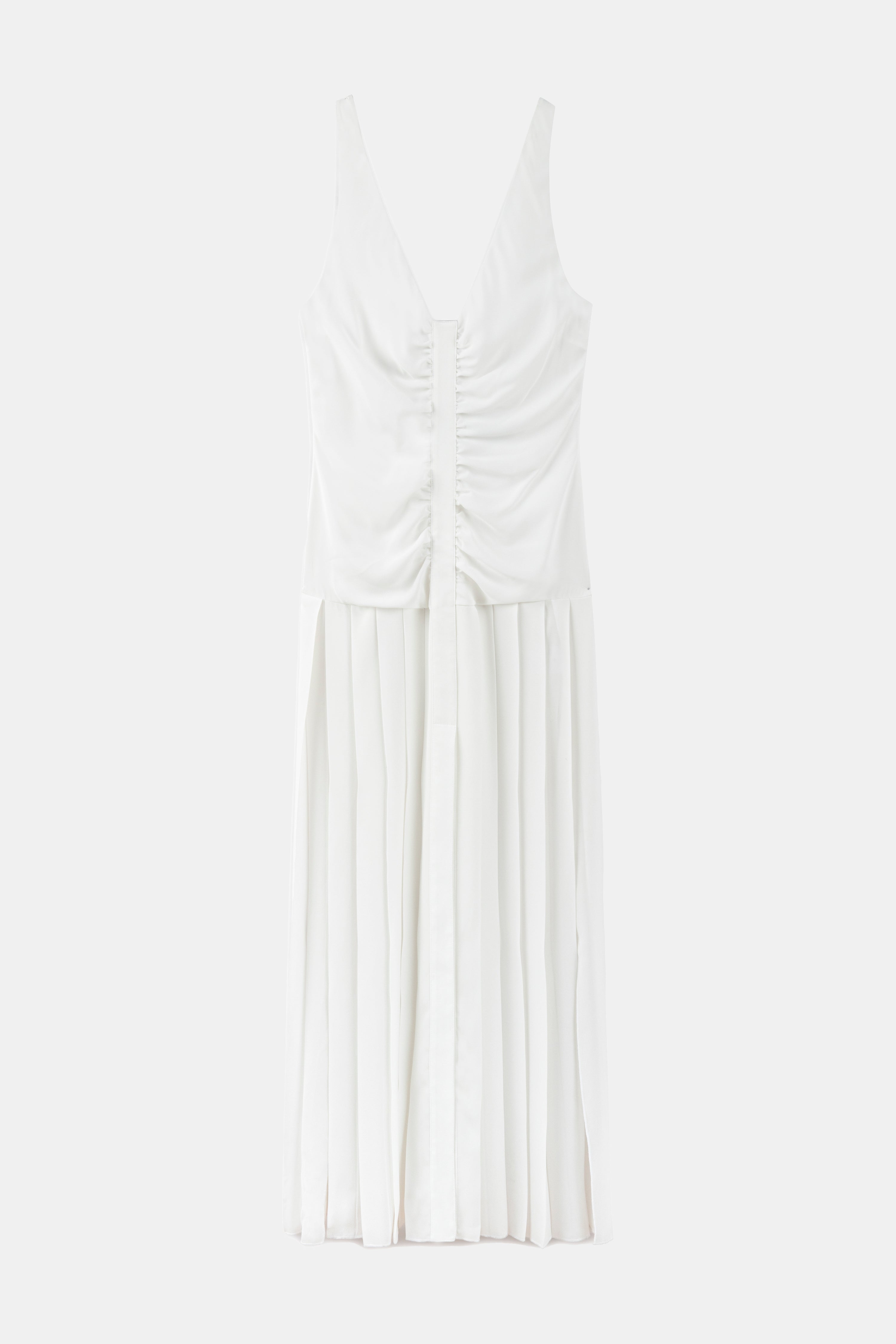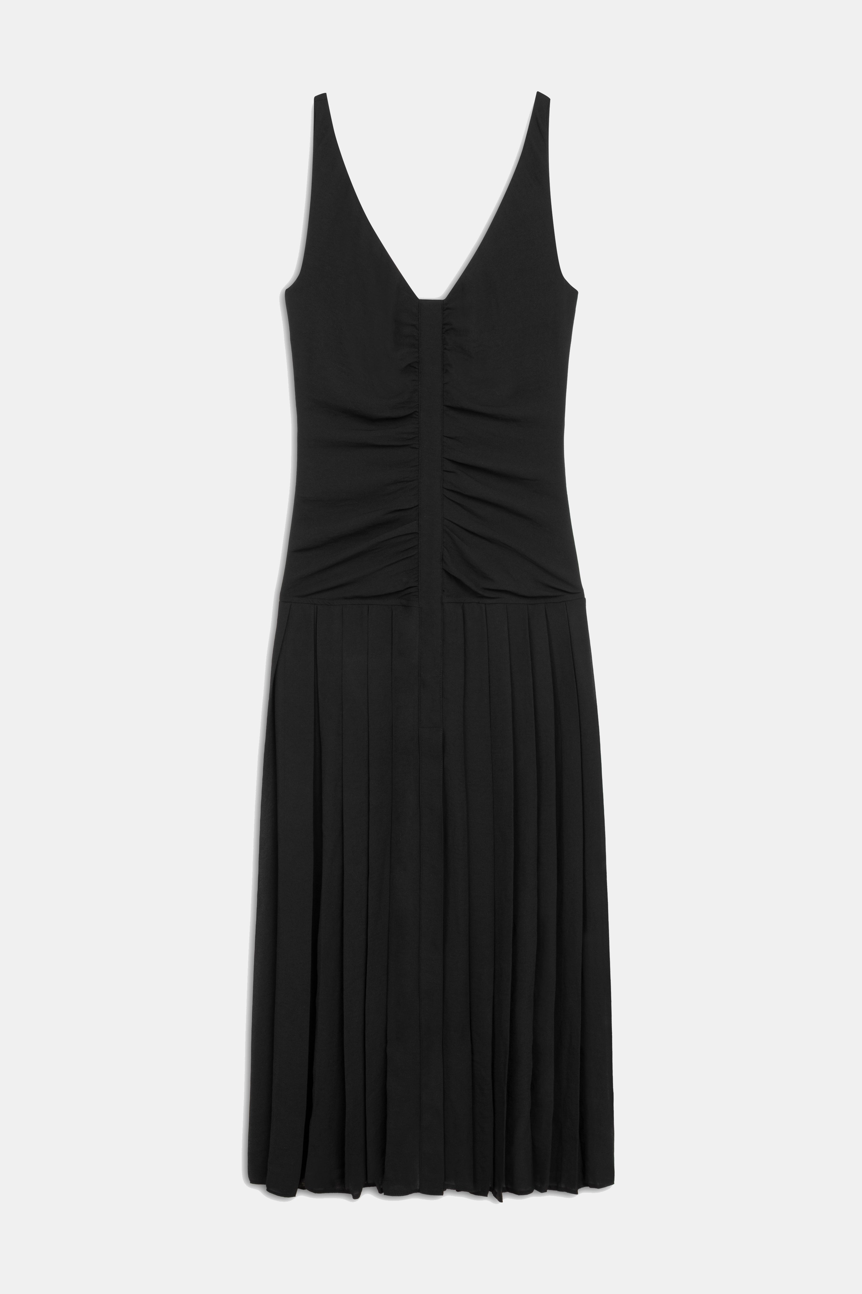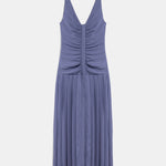 Ruched and Pleated Detail Strappy Midi Dress