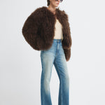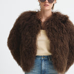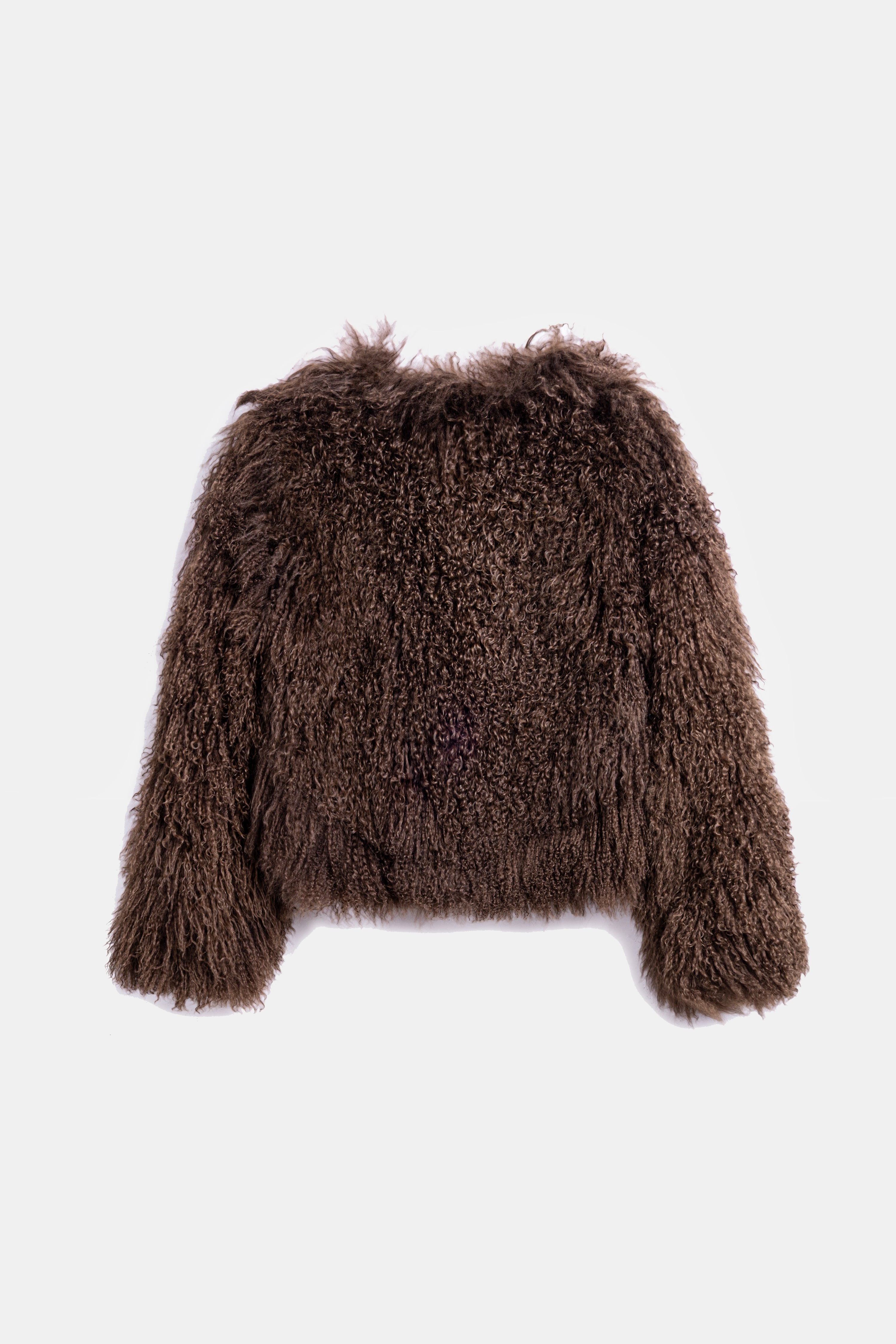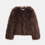 Short-cut, fluffy-textured, fur jacket.