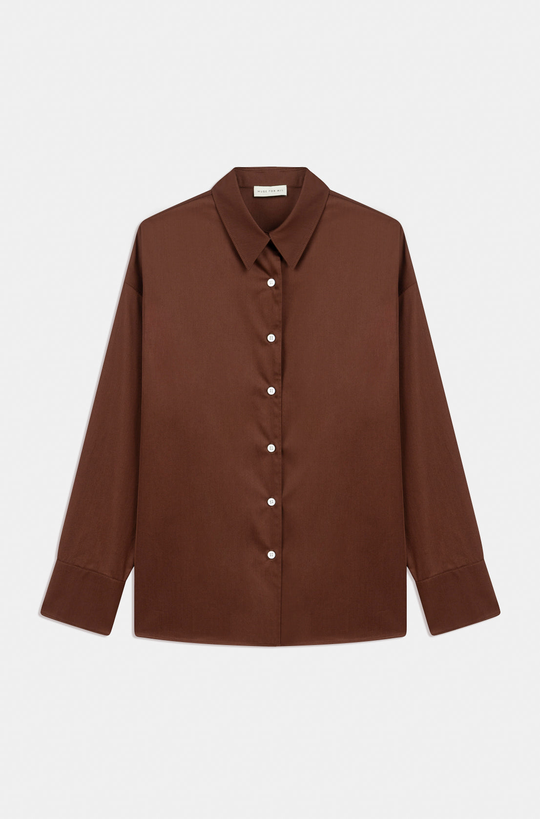 Oversize kesimli, düğmeli pamuk poplin gömlek.