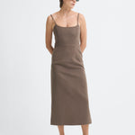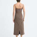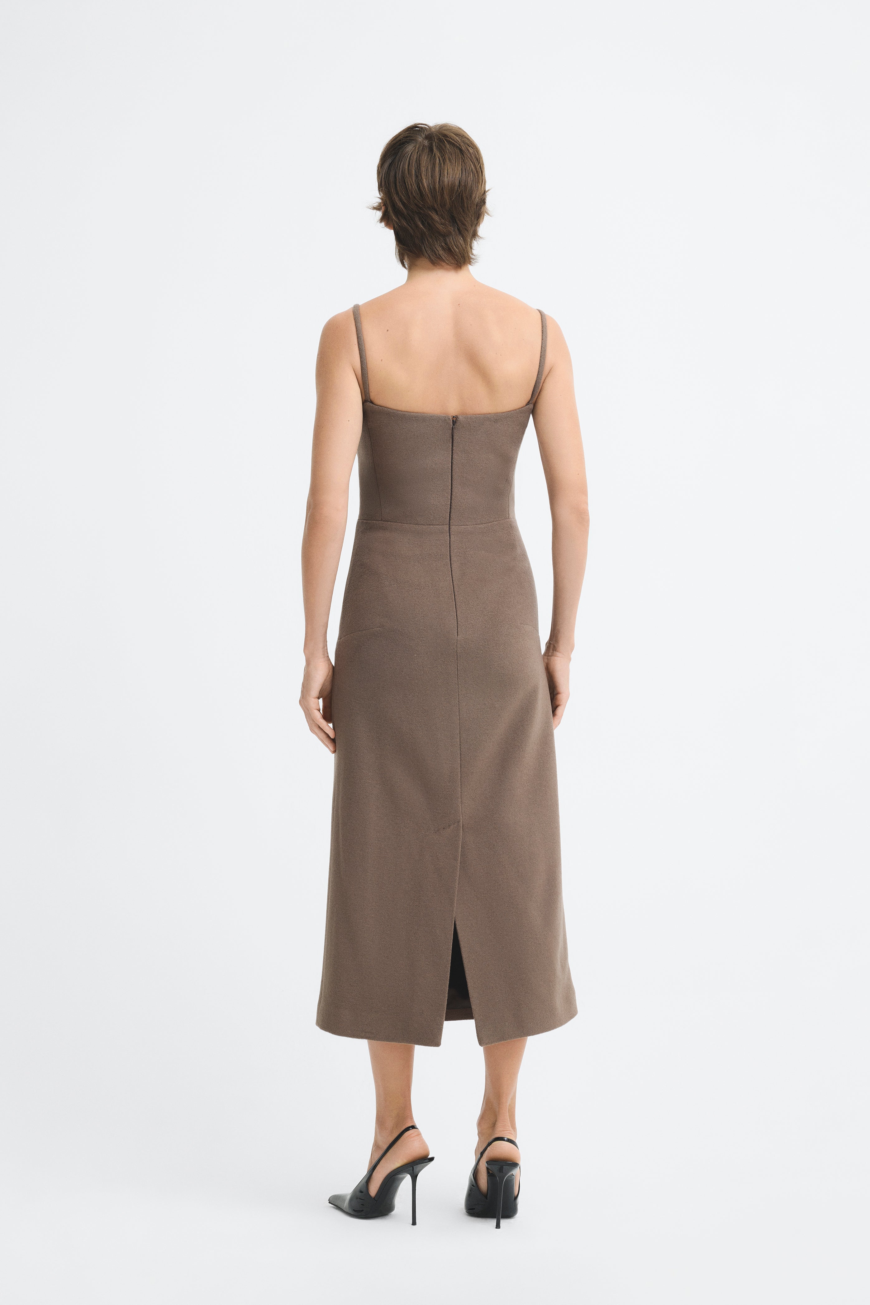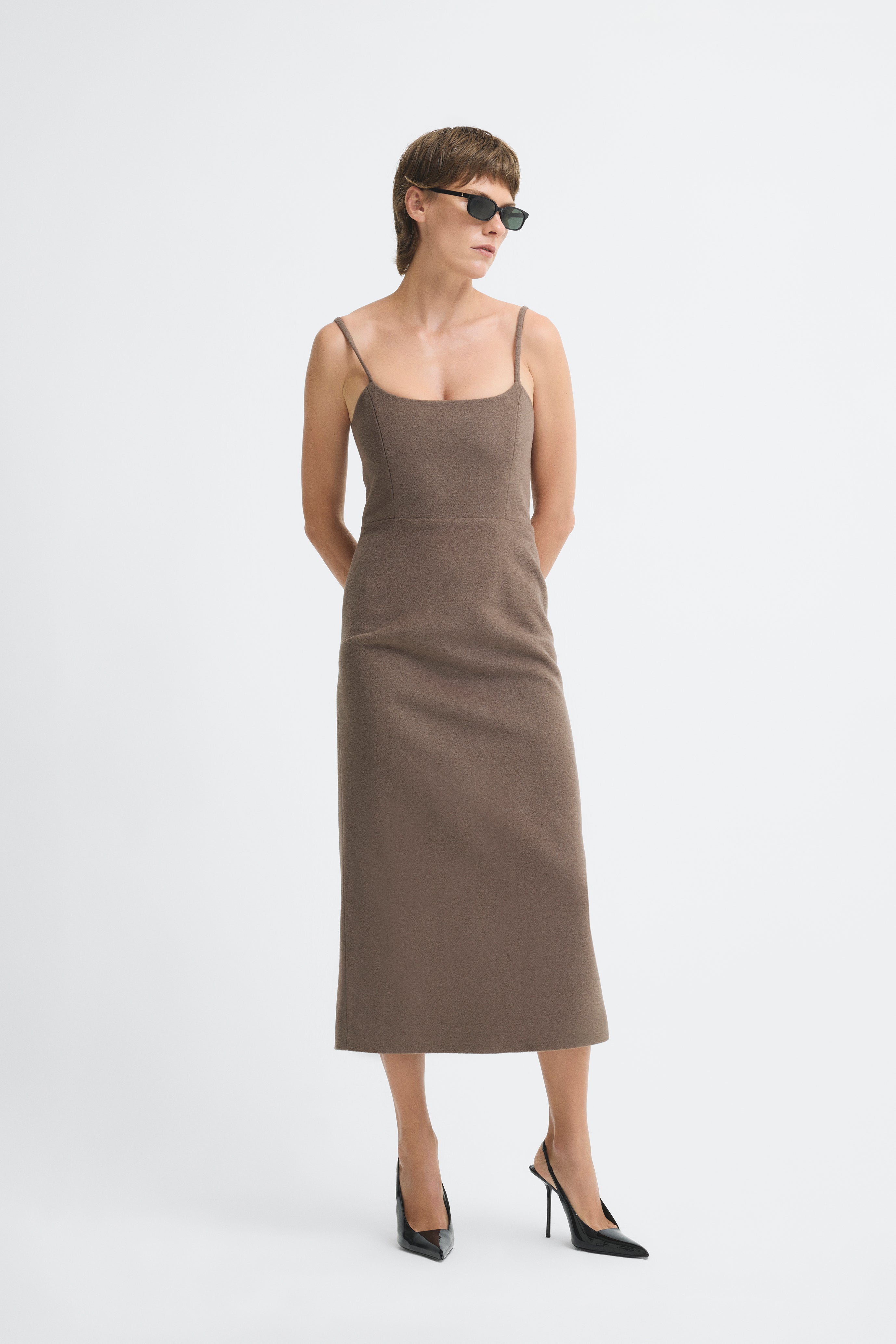 Minimal spagetti askılı, midi boy, vücuda oturan elbise