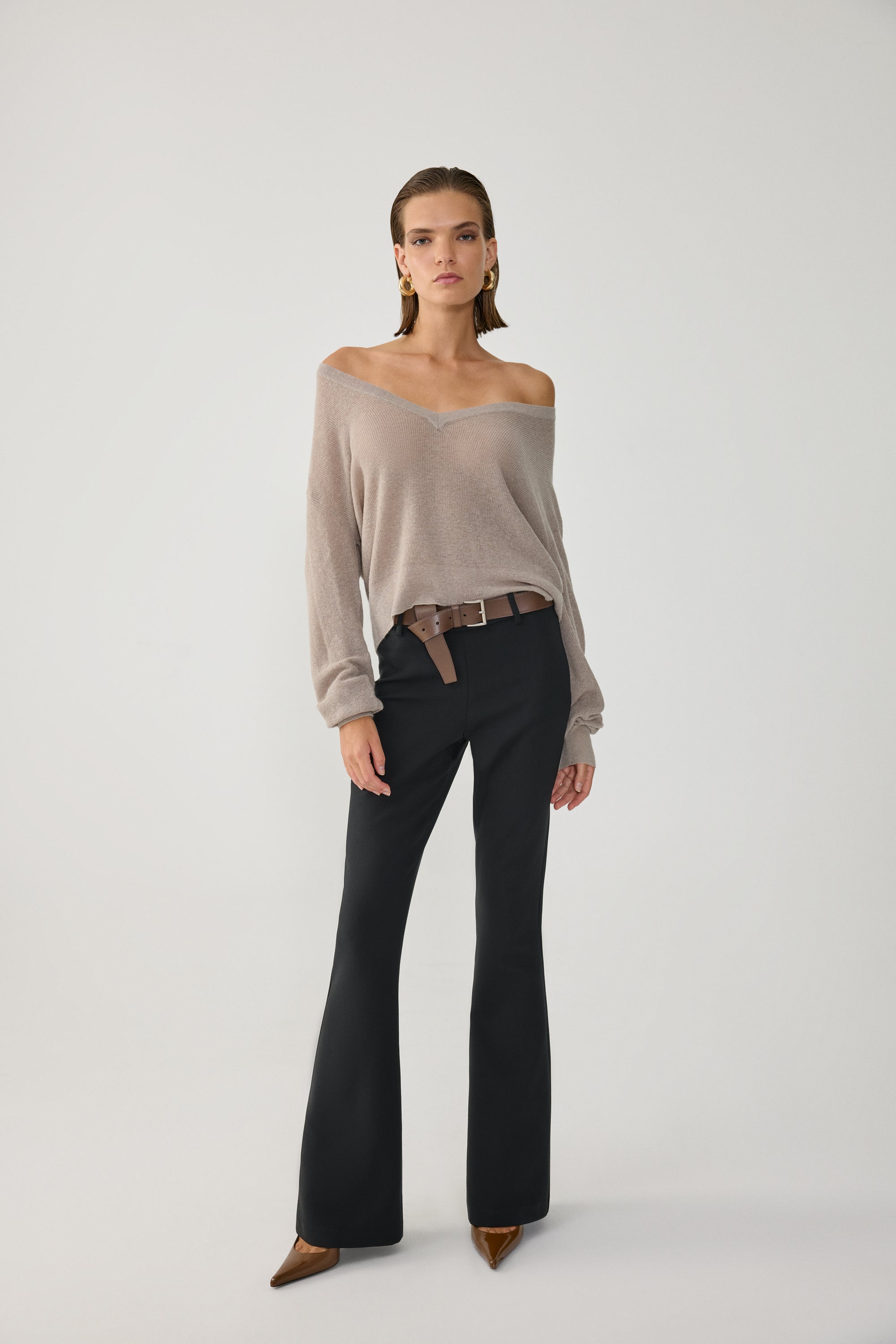 Normal bel, geniş paçalı pantolon